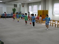5歳児らいおん組の伝承あそびチームでは、けん玉やまりつき、ゴムとびなどのできるようになった技を見て頂きました。