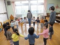 トップ > お知らせ > 1歳児うさぎぐみ 『リトミック遊びをしました』 園からのお知らせ 2022.01.05 ブログ 1歳児うさぎぐみ 『リトミック遊びをしました』 キーボードを使ってリトミック遊びをしました。 うさぎ、あひる、うま、めだかなどの動物になりきって、体を動かして楽しんでいました。しゃがむ時にはお尻が床につかないようにしたり、両足ジャンプをする時にはしゃがみ込んでから高く跳ぼうとしたりと、一人ひとり工夫する姿もみられました。 最後には「手をつなごう~♬」と歌が流れると、保育者や友だちと手を繋いできれいな円になっていました。「〇〇ちゃん、こっち入れてあげる!」と友だち同士誘い合いながら円になる姿を見て、子どもたちの成長を感じました。 new old