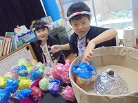 コーナーの食べ物や遊びは事前に年長児がいろいろなアイデアを出し合いながら一生懸命作ってくれました。