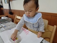 トップ > お知らせ > 0歳児 りす組「かきかき、トントン」 園からのお知らせ 2022.10.26 ブログ 0歳児 りす組「かきかき、トントン」 なぐりがきをしました。 好きなペンやクレパスを自分で選んで、上手く描けない時は持ち方を変えて描いている子もいました。 ペンやクレパスをグーっと握ってトントンと点を描いたり、腕を左右に動かして描いていました。 new old