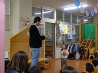 保育者の『おおきくなったら』の劇を見たり、4歳児からお祝いの歌を聴かせてもらったりしました。劇の最後には、「おおきくなったら、困っているお友だちに優しくしてあげられる人?」という問い掛けに、子どもたちからは「はーーい!」という大きな返答が返ってきました。
