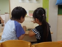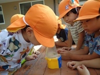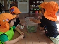 トップ > お知らせ > 3歳児ぱんだ組 『バッタ観察に夢中です』