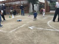 1歳ひよこ組では、園庭で箱車を引っ張ったり、サーキット遊びをしたり、足蹴りカーに乗ったりと園庭の好きな遊びをしました。ガチャ玉カプセルの中に入った質問に答えながらの自己紹介では、各家庭のお話を聞くことが出来ました。