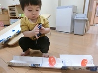 2歳児 あひる組 「ここ繋げへん!?」~転がし遊び~