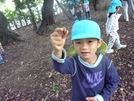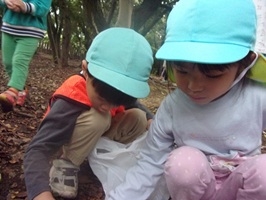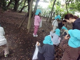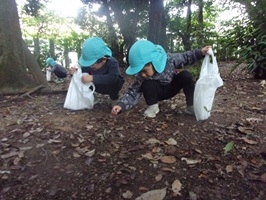 帰りには神社に寄り、たくさん落ちていたどんぐりを夢中で拾う子どもたちの姿が見られました。