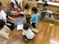 箱の中から音が聞こえる!と、不思議そうにしながら音遊びを楽しむ子、箱を積み木のようにして遊ぶ子など、それぞれが思い思いの遊びを楽しんでいました。