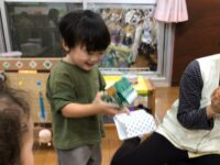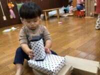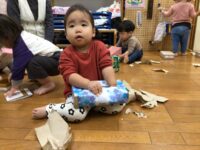 1歳児ひよこ組 中身は何かな?~ラッピング遊び~