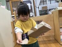 箱を開けるのは少し難しく、「かたい!」と言ったり、先生に助けを求めたりしながら、いろいろ試して頑張って開けようとしていました。