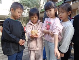 今年は小さな動物が人気で、ヒヨコを手にのせてもらうと、爪が当たって「痛い痛い」と言いながらも可愛さにニッコリ。腕にのせるとヨチヨチ歩き出し、「大丈夫かな…」と落とさないように腕が少し緊張していました。耳を澄ますと「ピヨピヨ~」と鳴く小さな声を、みんな静かに聞いていました。