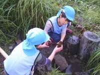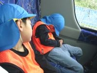 午後からも、虫探しや鬼ごっこ、小川でカエル探し、落ち葉遊びなど全力で遊び、バスの中ではぐっすり・・・。楽しい一日になりました!