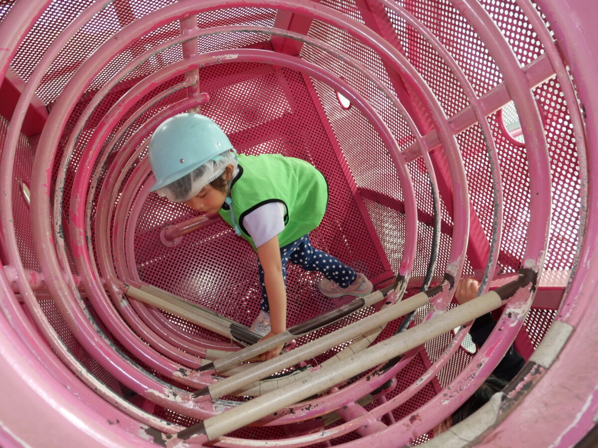 遊具の塔では、途中で泣き出す子もいましたが、自分ができそうなエリアに挑戦して頑張る子、最初から最後までやり遂げる子など、それぞれが自分なりの力を発揮していました。