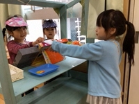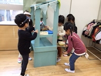 一方、お客さん役の子どもたちは、自分たちで作ったお財布にお金を入れて「まだかな?」と開店を心待ちにしていました。