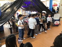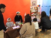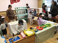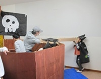 「ネイルショップ」では、たくさん作ったネイルチップを見せながら接客を楽しんでいました。「ジオラマ」では、細かなところまで作り上げた飛行場を案内したり、お客さんを乗せて「どこまで行きますか?」と操縦して楽しんだりしていました。「おばけやしき」は行列ができ、案内の子どもたちも大忙し。中からも「わっ!」と驚く声が聞こえてました。「宝石展」は図鑑とにらめっこしながら持ってきてくれた石の鑑定をしてくれました。「海賊船」では、船の中を案内したり大砲を撃ってみたりしていました。宝の地図を見ながらお宝もゲットしてもらえました。