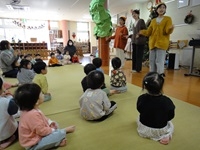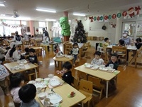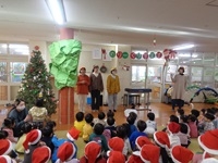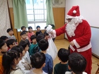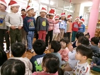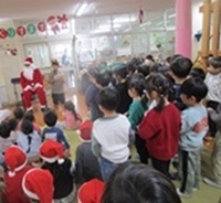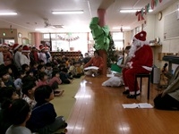 サンタさんが「メリークリスマス!」と言いながら登場するとみんなドキドキ、ワクワクしながらサンタさんを見つめていました。