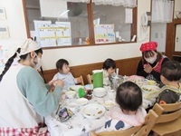 そして今日の給食はクリスマスメニュー!いつもと違う場所、雰囲気で楽しく食べました。