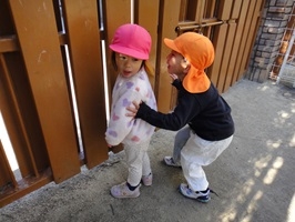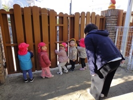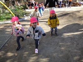 トップ > お知らせ > 1歳児うさぎ組「だーるまさんがころんだ!」 園からのお知らせ 2026.02.03 ブログ 1歳児うさぎ組「だーるまさんがころんだ!」 だるまさんがころんだの集団遊びをしました。「だるまさんがころんだ」のかけ声で鬼が振り向くと「ストップ!」「し~(静かに)」と動きを止めたり、3歳児クラスのお兄ちゃんのポーズを真似て動きを止める姿も見られました。 「だるまさんがころんだ」のかけ声を言いたくて、ぼくも私もとどんどん輪が広がっていました。 保育者友だちとのやりとりなど簡単なルールのある遊びも楽しめるようになってきています。 new old