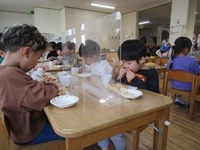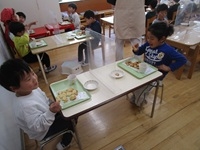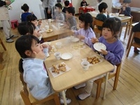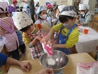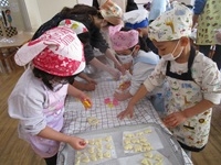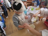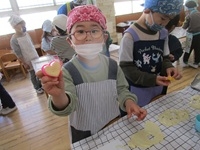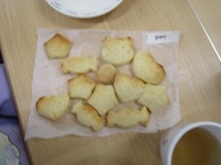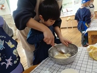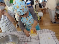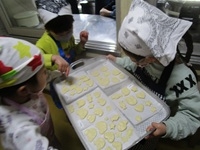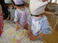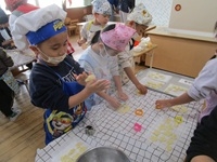 トップ > お知らせ > 4歳児 きりん組「レモンクッキーを作りました!」 園からのお知らせ 2026.02.03 ブログ 4歳児 きりん組「レモンクッキーを作りました!」 園で収穫したレモンを使ってクッキーを作りました。 材料を量ったり混ぜたりと役割分担をしながら進めていきました。 混ぜるときも「まだサラサラやな」「だんだん固まってきた」など変化を楽しむ姿がありました。 生地を丸めたり、のばしたりして「粘土みたい」「もちもちしてる」と感触を友だち同士伝え合いながら、型抜きをしました。 「レモンのいい匂いする」「焼きあがるの楽しみ!」 早速食べてみると「おいしい!レモンの味する!」「すっぱい!」 「この形かわいいやろ!」 大満足なクッキングでした。 new old