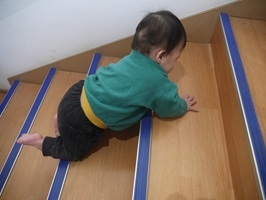 手足の力がつくように階段もハイハイをして自分で登っています♬