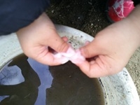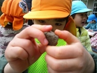 トップ > お知らせ > 3歳児 ぱんだ組 「宝石みつけた!」 園からのお知らせ 2026.02.03 ブログ 3歳児 ぱんだ組 「宝石みつけた!」 園庭で見つけた石。「これ宝石ちゃう?」 図鑑や宝石の本と照らし合わせてみると「これとにてる」「色いっしょや」 「磨くともっときれいになるかな?」 磨いていくと白や透明、黒、オレンジなど色々な色がありました。 もっときれいな宝石を見つけたいと、毎日園庭で発掘に夢中です。 new old