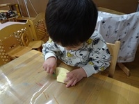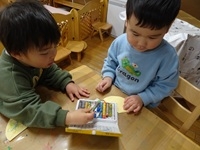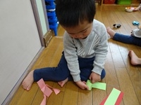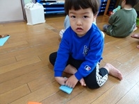 トップ > お知らせ > 1歳児 うさぎ組 クルクル、かきかき ~鬼の帽子製作~ 園からのお知らせ 2026.02.03 ブログ 1歳児 うさぎ組 クルクル、かきかき ~鬼の帽子製作~ 鬼の帽子を作りました。 指先が器用になってきたうさぎ組。画用紙をクルクル丸めることに挑戦しました! 初めは上手くできなかった子も何度かするうちに両手でクルクルすることや指先を使うことなどコツを掴んでいました。 「みて!できたよ!」と保育者に教えてくれました🎵 鬼にツノにはクレパスでお絵描きをしました。「なにいろにしようかな~」「あか!」と自分で好きな色を選んでいました! かわいい鬼の帽子の完成です👹 new old