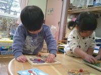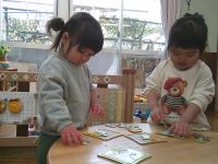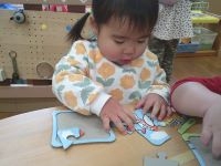 トップ > お知らせ > 1歳児 ひよこ組 パズル遊び楽しんでいます 園からのお知らせ 2026.02.03 ブログ 1歳児 ひよこ組 パズル遊び楽しんでいます 木製の型はめパズルからスタートし、今では4~10ピースのパズルを楽しむようになりました。 最初はピースの凸凹を合わせてピースがつながることを喜んでいましたが、繰り返し遊ぶうちに、パズルに描かれた絵を見ながら凹凸をあわせるようになってきました。 上手くつながり、パズルが完成すると「できたー」「みて!」ととても嬉しそうです。「もう一回」と完成したパズルをすぐにひっくり返し、何度も何度も楽しんでいます。 new old