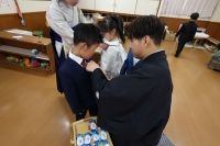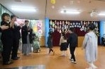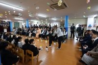 登園してくると子どもたちは自分たちで絵を描いた手作りのコサージュを胸につけてもらい、いつもとは違う雰囲気に少し緊張している様子でした。友達が増えてくるといつものように元気いっぱいに会話をし、今日の日を迎えられたことに喜びいっぱいの様子でした。