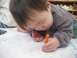 クレパスを握る手にグッと力を入れて描く事ができるようになってきました。