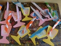 次の日、折り紙でストローを作りコップににじみ絵を貼ると完成♪自分で作ったのがお気に入りなようで何度も見に来ては「これ○○の」という姿もありましたよ。