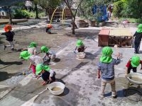 2歳児ぺんぎん組 「ぬりぬり~」筆やローラーを使って
